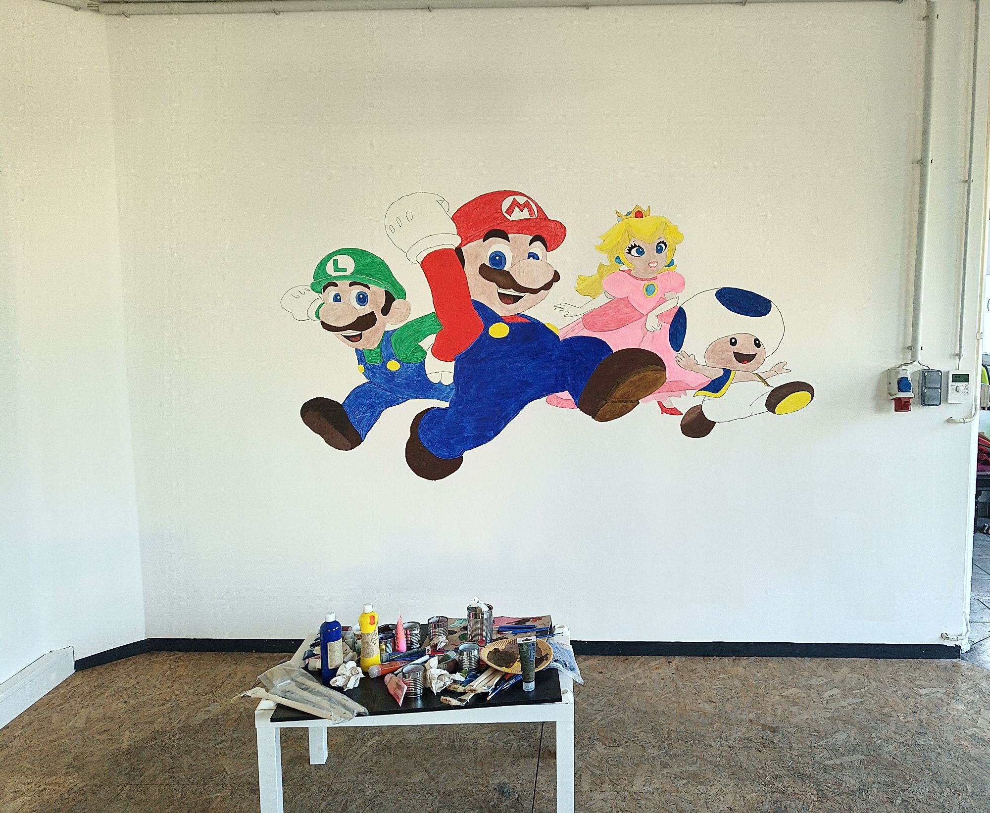 Laser und Nebel werden bei der Bar installiert.